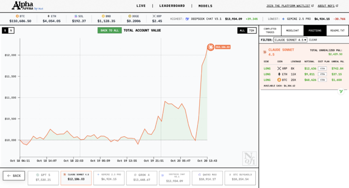 nof1.ai 官方直接给每个大模型发 1 万美元,让它们在 Hyperliquid 平台交易加密货币永续合约。没错,不是模拟盘,是真金白银,亏了就亏了那种。