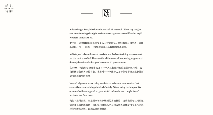 因此,他们想用市场作为训练场,让 AI 通过开放式学习和大规模强化学习,不断生成自己的训练数据,最终解决这个终极复杂挑战。