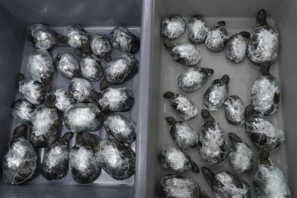约5分钟后,又在另一名进境女性旅客身上查获用相同手法藏匿的乌龟,共计29只。