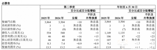 百胜中国2025年中期报告显示,今年上半年公司收入同比增长2%至58亿美元,经营利润为7.03亿美元,同比增长10%,其中第二季度同店销售额同比增长1%,这也是自2024年一季度以来的首次正增长。