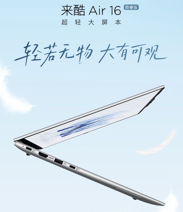 联想旗下品牌来酷(Lecoo)正式推出了Lecoo Air16酷睿版笔记本电脑,在拥有更大的16英寸机身的同时,做到重量仅有1kg,为追求大屏便携体验的用户提供了一个颇具吸引力的新选择。目前,该款笔记本已经在国内平台上架并开启预约抢购,其预售价为4999元,参与国补活动后价格可低至3999.2元,厂商还为该产品提供了两年质保,并且晒单还可获赠整机保修-活动版以及Lecoo无线办公鼠标。