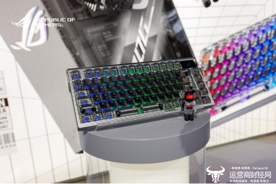 最后,我们来看看本次新品超玩会上亮相的透明键盘—ROG夜魔Extreme Special Edition键盘,搭载了全新定制的NX透明轴壳,有效提升键盘的透明质感,脚撑、掌托底板等小部件也采用透明设计,与整体风格相得益彰。
