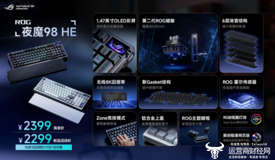 在新品超玩会上,ROG还为大家带来了新品ROG夜魔98 HE无线磁轴键盘。其采用98配列设计,满足玩家在不同场景下的需求,实用性超强。支持三模无线连接,适应各种设备需求。还采用了1.47英寸OLED彩屏,实时显示关键信息,操作便捷。同时,优化了铝合金上盖,中间无接缝质感细腻,彰显独特个性。作为市面上少有的98配列磁轴键盘,无论是游戏玩家还是日常办公用户,夜魔98HE都能提供卓越的性能和舒适的使用体验。