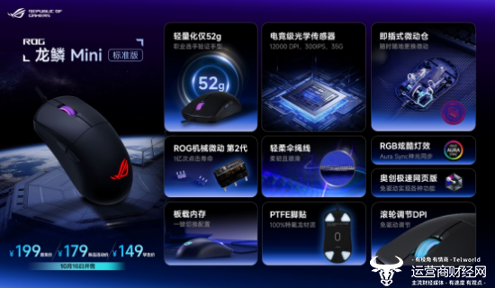 同时,还配备了PTFE脚贴,提供顺滑移动体验,让玩家轻松掌控全局。还采用轻柔伞绳线,柔韧且顺滑,有效减少拖拽感。该鼠标售价199元,还有新品活动价179元和学生专属价149元,10月16日开售。