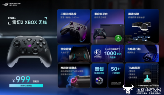 十字键和XYAB键均为微动设计,按压键程相比导电胶按键缩短50%,触发压力减轻50%,按键寿命长达10M次,连点和单击都非常灵敏,无疑是游戏玩家的必备好物,这款手柄售价999元,预计12月开售。