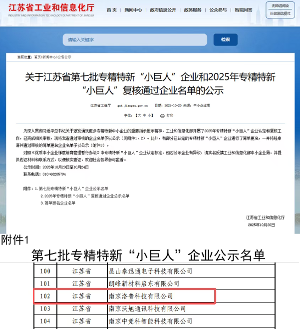 近日,工业和信息化部公示第七批国家级专精特新“小巨人”企业名单,南京洛普科技有限公司(以下简称“洛普科技”)凭借其在专业领域的突出实力成功登榜。