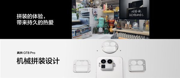 作为年度旗舰,真我GT8 Pro拥有独具一格的工业设计,该机首创机械拼装设计,其镜头DECO支持可拆可拼可换,自由切换不同形态,每一种形态都与众不同,换一种形态如同更换一台新手机。
