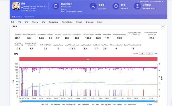 独显芯片R1的 “双芯并线渲染技术” 成为重载游戏满帧的关键。在《原神》极限画质设置下,开启“超帧模式”后平均帧率119.1帧,游戏过程中并未感受到明显卡顿,归功于内置的7000mm²超覆盖冷锋VC散热系统,其单层VC设计完整覆盖主板核心,热量扩散效率跻身行业第一梯队,配合石墨烯导热膜,热量能快速扩散到机身各处,即使长时间握持游戏,也仅能感受到轻微温热,完全不烫手。