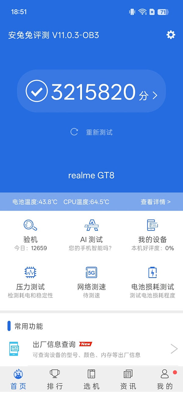 真我GT8的性能核心是“骁龙8至尊版+电竞独显芯片R1”的双芯组合,这也是同价位唯一搭载双旗舰芯片的机型。实测安兔兔跑分超321万分,得益于骁龙8至尊版“2+6”全大核架构与台积电3nm制程的能效优化,配合独显芯片R1的算力分流,真我GT8实现性能与功耗的完美平衡。