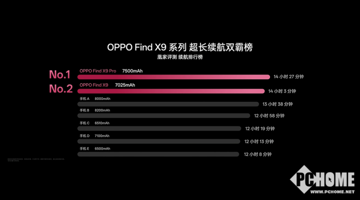 7500mAh电池是Find系列的新电池纪录,其相比上一代的OPPO Find X8 Pro,有着1590mAh的巨量增幅,提升幅度高达26.9%,能够直接带来数个小时的续航时间提升。