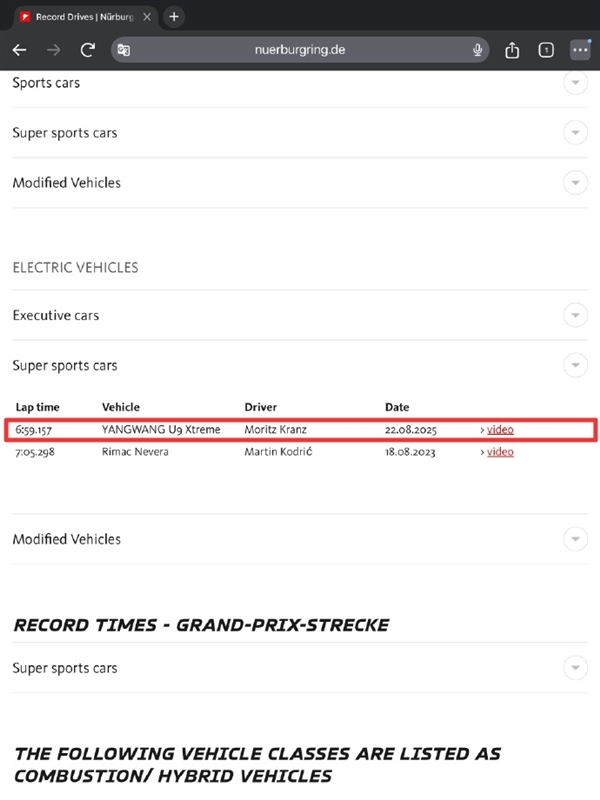 此次,仰望U9Xtreme以6:59.157的亮眼成绩,夺得纽北量产电车圈速第一。