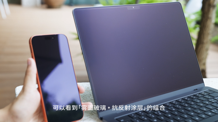 和今年有抗眩光涂层的 iPhone 17 Pro 相比,MacBook Pro 上纳米纹理玻璃 + 抗反射涂层的组合,无论是在泛光的室外还是充满点光源的室内,消除反光的效果都相当出色。