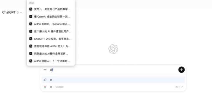 顾名思义,前者 Google 选项直接跳转到常规搜索引擎页面,后者则类似常见的 AI 聊天助手,调用 ChatGPT 模型直接给出答案,而且你在 Atlas 上的每个提问都会保留在你的 ChatGPT 账号历史聊天记录里。