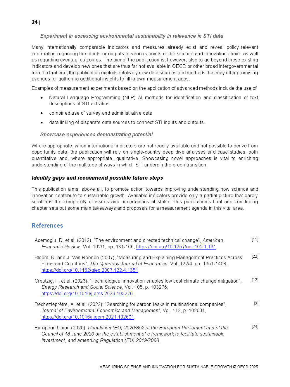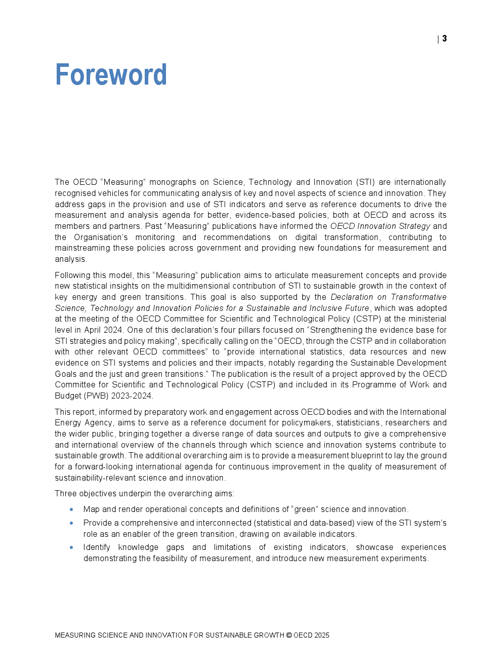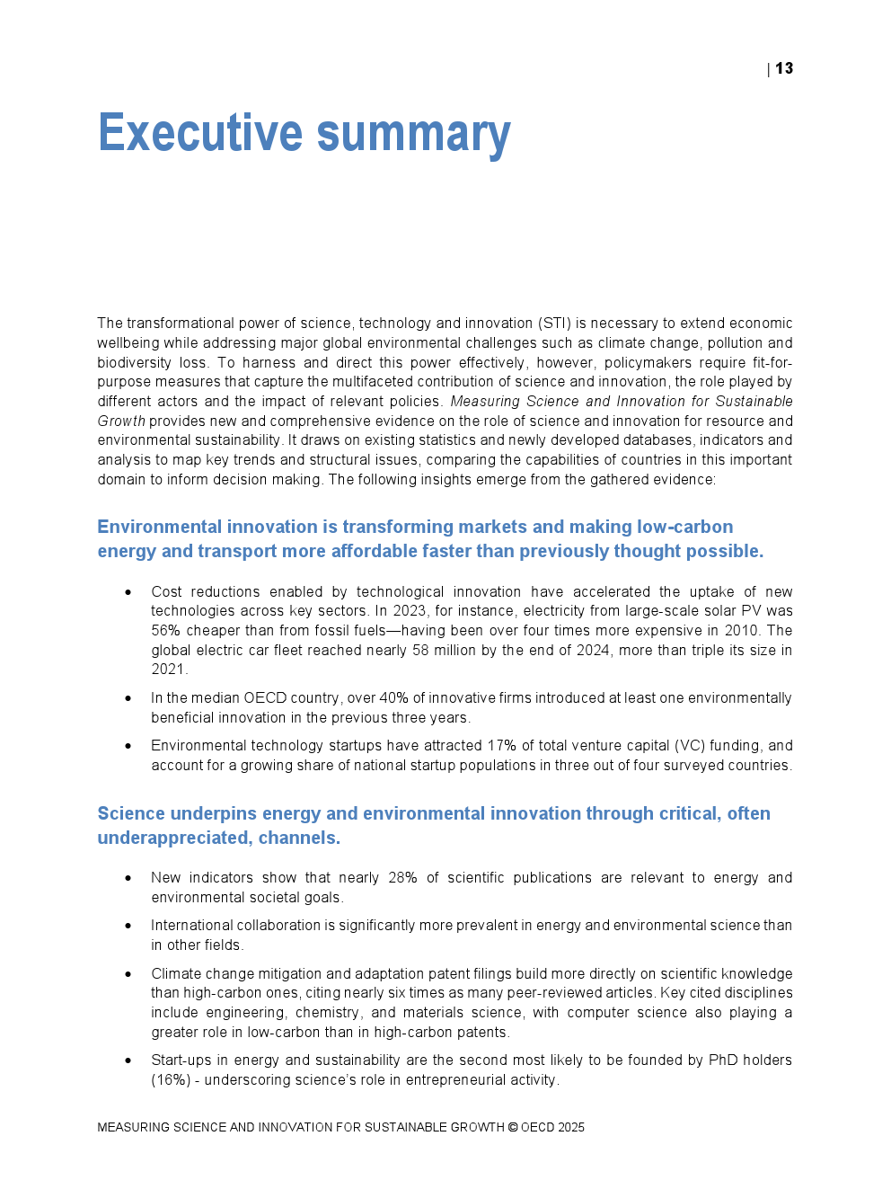 OECD发布了“衡量科学和创新促进可持续增长”。科学、技术与创新(STI)的变革力量对于在应对气候变化、污染和生物多样性丧失等全球重大环境挑战的同时扩展经济福祉是必要的。然而,为有效利用和引导这种力量,政策制定者需要适合的衡量标准,以捕捉科学和创新的多层面贡献、不同行为者所扮演的角色以及相关政策的影响。报告提供了关于科学和创新对资源与环境可持续性作用的新且全面的证据。它利用现有统计数据和新开发的数据库、指标及分析,绘制关键趋势和结构性问题,比较各国在这一重要行业的能力,为决策提供信息。收集到的证据得出以下见解: