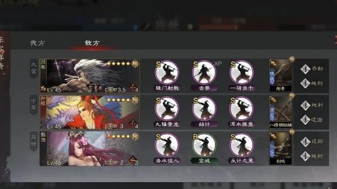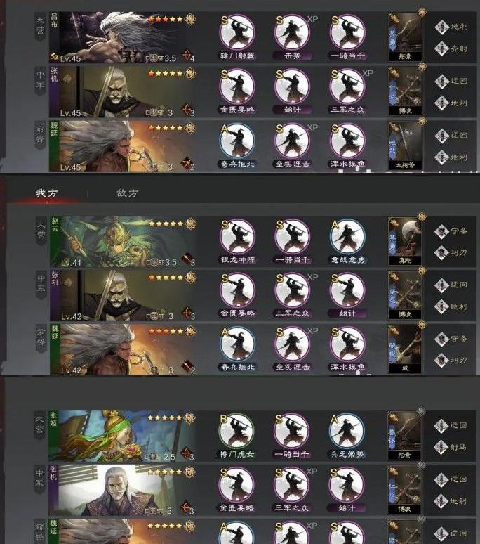 张机魏延搭配物理大营,攻守兼备,强势无比。无论鬼吕、赵关还是姬,皆难挡其锋。大营可选兵无常势、击势或愈战愈勇,灵活配置,随资源而定。