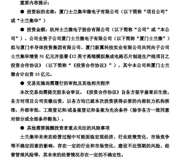 士兰微联合多方投建200亿12 寸高端模拟芯片产线,加速国产化替代进程