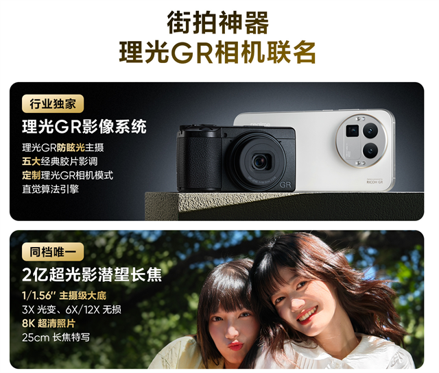 真我GT8 Pro这一次搭载了全链路深度定制理光GR影像系统,在影像方面不但硬件足够出色,有着1/1.56英寸的5000万像素主摄,还在抗眩光方面做足了功夫,7P镜头提升透光率,抗眩光镀膜减少杂光和“鬼影”,更有着理光GR模式,并且多种影调还原胶片质感,让你随手就能拍出带有故事感的大片,并且搭载了价位段罕见的1/1.56大底2亿像素潜望式长焦镜头,带来了更好的长焦效果,使得这一次真我GT8 Pro绝对能够成为街拍神器。