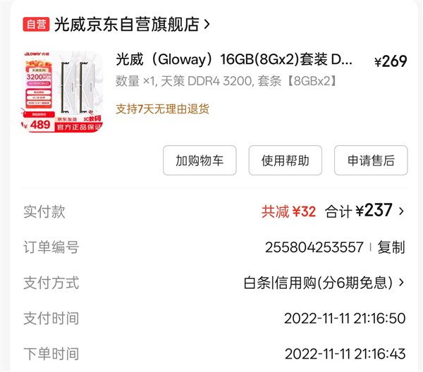 对应到消费者端,快科技编辑2022年购买的DDR4 16GB内存(8GBx2)套装仅237元,目前价格已经涨到了489元,翻了一倍还多,堪比黄金。