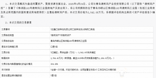 据悉,公司拟将位于青岛市崂山区株洲路183号的澳柯玛工业园房地产及相应国有建设用地使用权,以3542.05万元的价格转让给关联方青岛澳柯玛产业投资有限公司。该资产是公司在2006年取得,原值2784.40万元,截至2025年8月末账面净值约为1164.03万元。公司表示,此次交易主要目的是盘活闲置资产,回笼资金以聚焦主营业务发展。