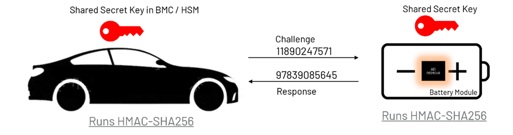 安全哈希算法(SHA),它基于汽车 BMS 和电芯之间的共享密钥,是一种对称方案。
