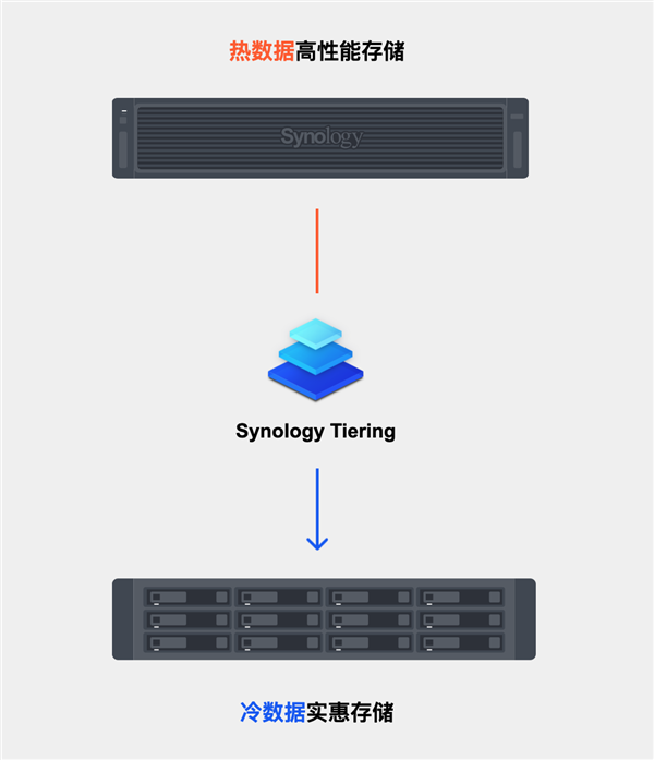 新增的Synology Tiering分层存储能自动把高频访问的“热数据”放高速盘、低频的“冷数据”存普通盘,兼顾性能和成本。