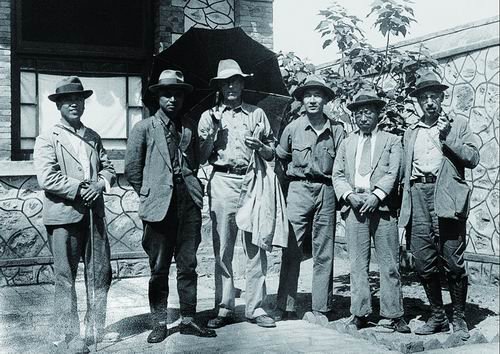 1934年5月,裴文中、李四光、德日进、卞美年、杨钟健、巴尔博(从左至右)在北京周口店办事处的院子里。