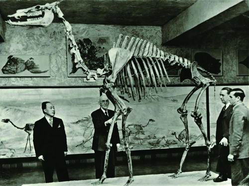 1944年,杨钟健(左一)在美国内布拉斯加大学博物馆参观。