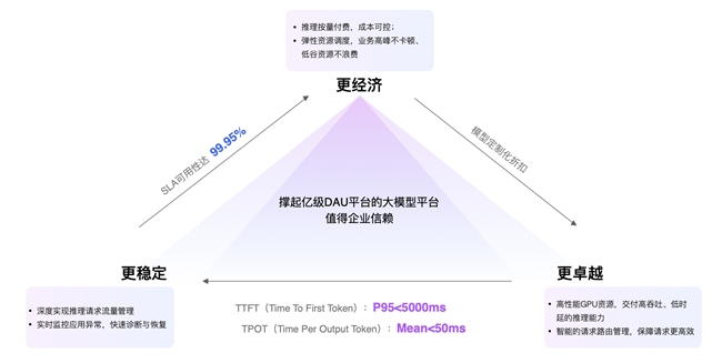 ● 透明可控的成本:支持按量付费和弹性资源调度,结合极致的推理性能优化,帮助企业在业务高峰期从容应对,在业务低谷期节约资源,实现成本可控的 AI 应用落地。