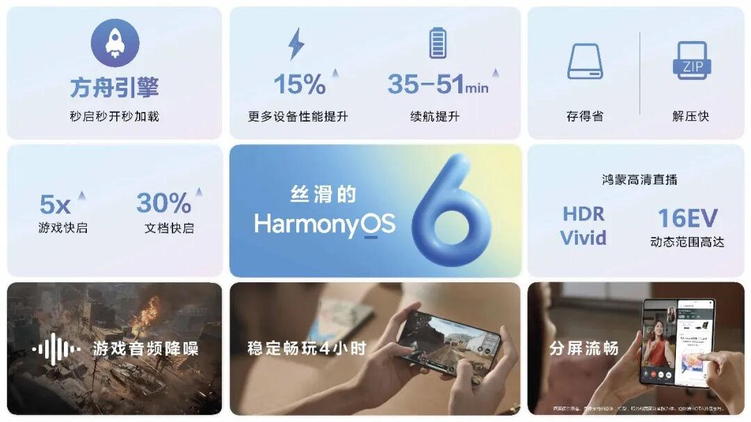 底层的确定性,来自方舟引擎的持续进化。基于软硬芯云一体优化,HarmonyOS 6多品类设备性能提升约15%,续航延长35分钟以上,并带来‘秒启、秒开、秒加载’的响应体验。