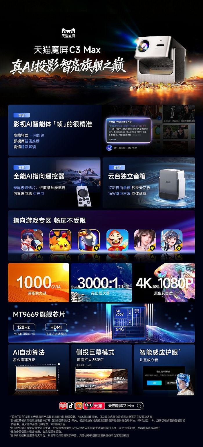 用户体验是一个整体,它由显性的性能和隐性的安全、稳定共同构成。天猫魔屏C3 Max通过提高在安全细节上的成本占比,重新描绘了千元投影的“价值曲线”。