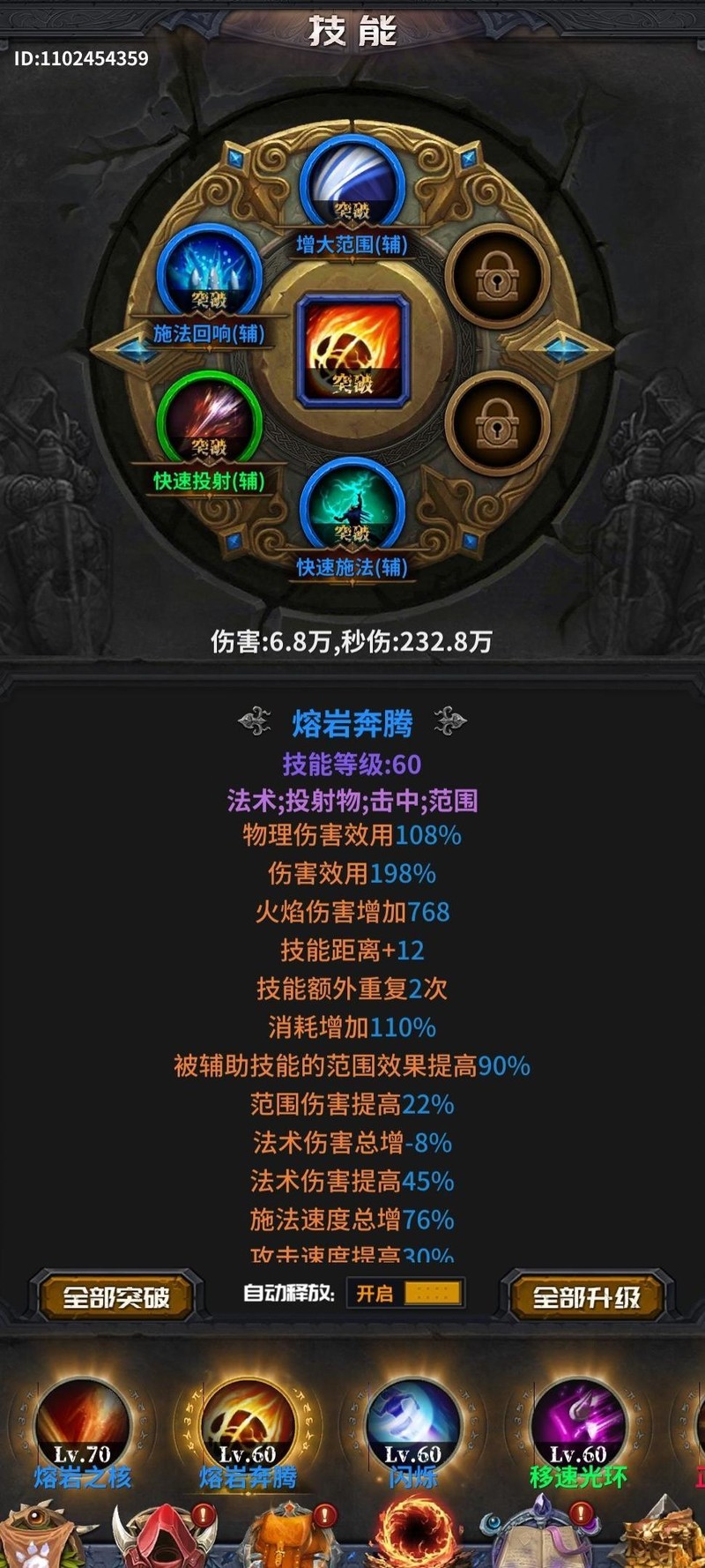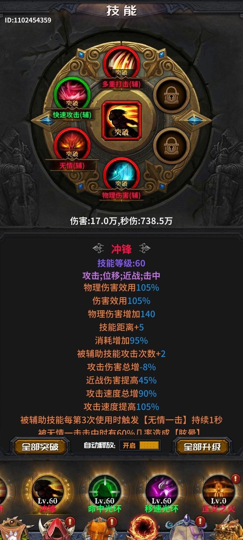 此时我的各项技能均已达到70级,天赋也已成型。