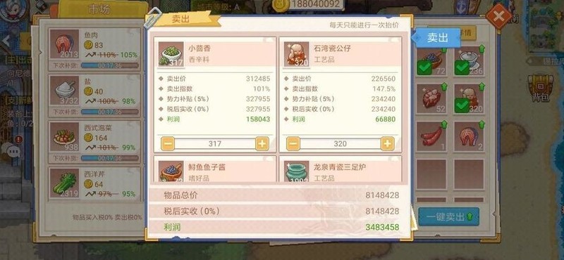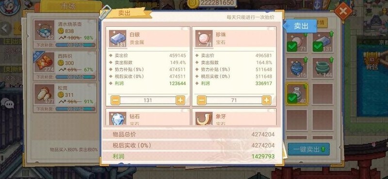 由于该游戏中的跑商货物刷新时间在0.5至1.5小时之间,单一小型商路容易出现断货或缺货,影响效率。该线路由多个小型跑商环组成,综合利润与运行效率目前来看最为理想。