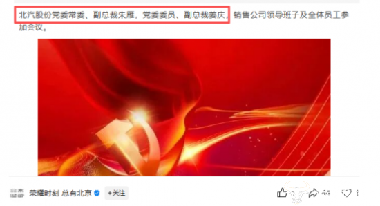 据了解,来到北汽后,姜庆最初是在研究院做工程师,一直在研发岗任职,2013年时,他从三级公司挂职到集团本部团委,开始负责党群工作。从研发岗转到党群岗,跨度还是比较大的,不过那些年他很少公开露面,不清楚其具体是什么职务。