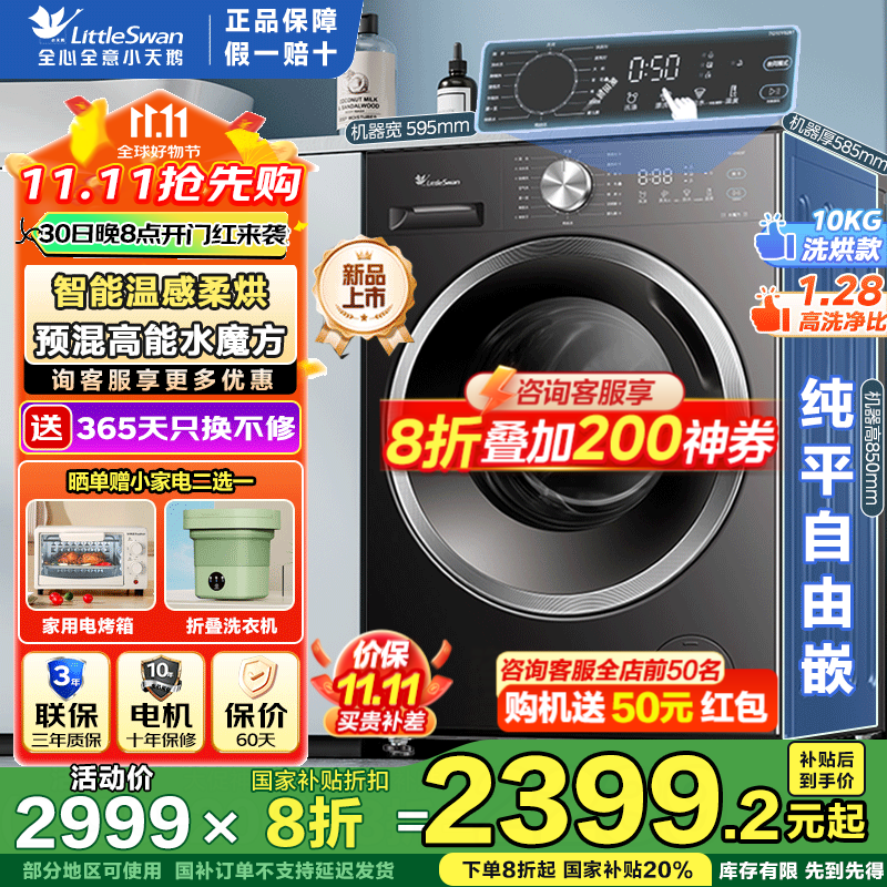 小天鹅洗烘一体机京东特惠,低至2059元