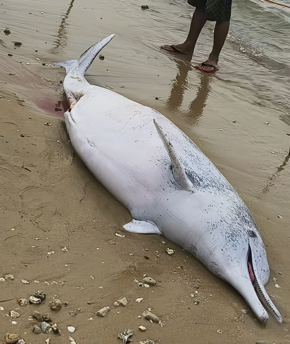 快科技10月27日消息,近日有网友在广东湛江硇洲岛谭北湾一处沙滩上发现一只中华白海豚尸体。
