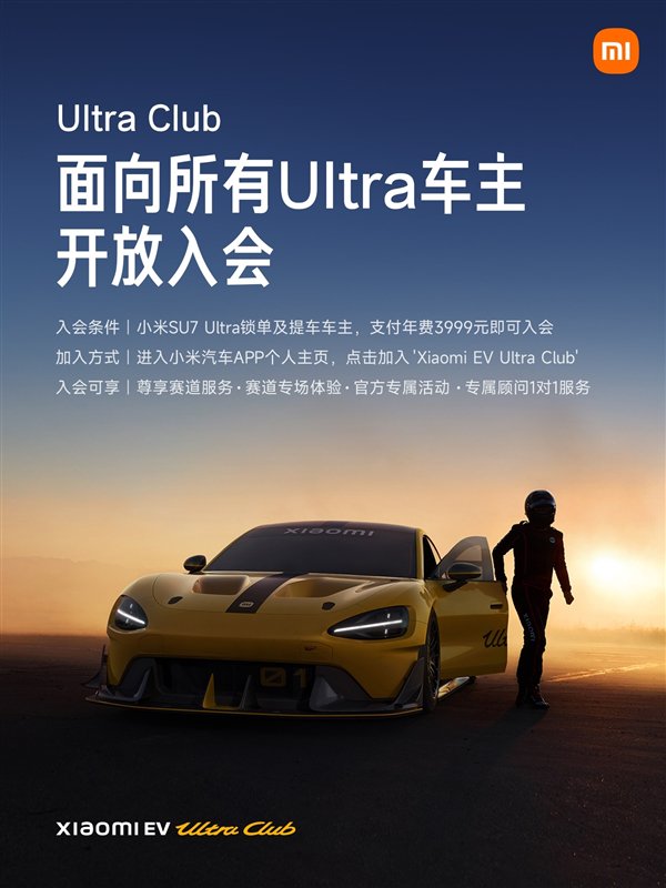 快科技10月27日消息,小米汽车今日宣布,小米Ultra Club面向所有Ultra车主开放入会。