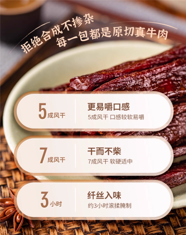 每一包都是原切真牛肉,拒绝合成不掺杂。满满高蛋白,抗饿小能手。