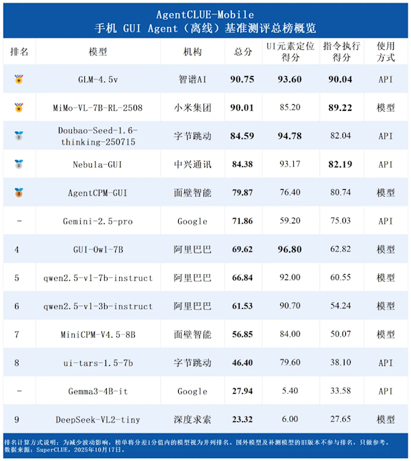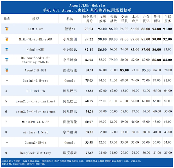 快科技10月27日消息,近日,SuperCLUE正式发布首期AgentCLUE-Mobile手机GUI Agent(离线)测评报告。