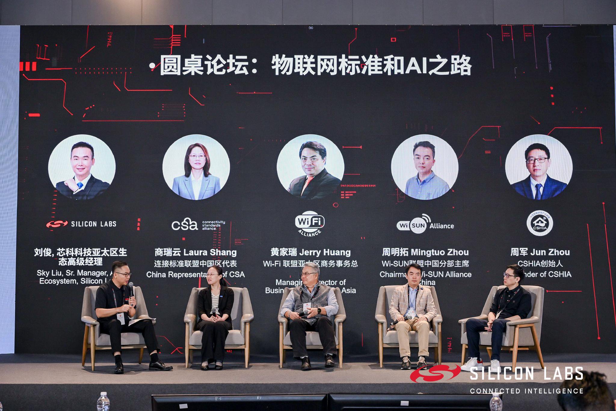 大会还准备了精彩的圆桌论坛,连接标准联盟(CSA)中国区代表商瑞云、Wi-Fi联盟亚太区商务事务总经理黄家瑞、Wi-SUN联盟中国分部主席周明拓与CSHIA创始人周军,深入探讨了AI如何重塑无线连接标准,推动更智能的设备、网络与生态系统的发展。在下午的技术培训时段中,大会共开设了蓝牙、远距离连接(Long Range)、Matter和Wi-Fi四大主题,介绍了诸如蓝牙信道探测、Matter新协议、Amazon Sidewalk、Wi-SUN及Wi-Fi 6等业界最新无线技术,并现场演示了基于它们的创新解决方案和开发实践。