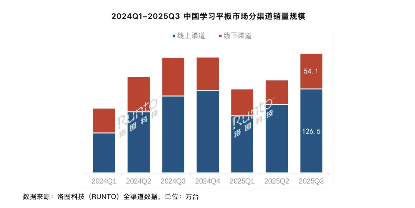 10 月 28 日消息,洛图科技现已公布 2025 年第三季度中国学习平板零售市场追踪报告,其中显示第三季度中国大陆学习平板市场在线上线下全渠道的销量为 180.6 万台,同比增长 3.5%,销额为 54.3 亿元,同比增长 7.4%。