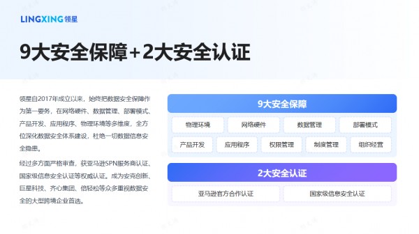 在跨境业务中,数据不仅是资产,更是合规的核心载体。领星ERP深知数据安全与合规对于跨境企业的重要性,从技术和管理两个层面构建了九大安全防护体系,全方位保障企业数据安全。这九大体系涵盖了物理环境、网络硬件、数据管理、部署模式、产品开发、应用程序、权限管理等多个维度,具体可以归纳为以下几个关键层面: