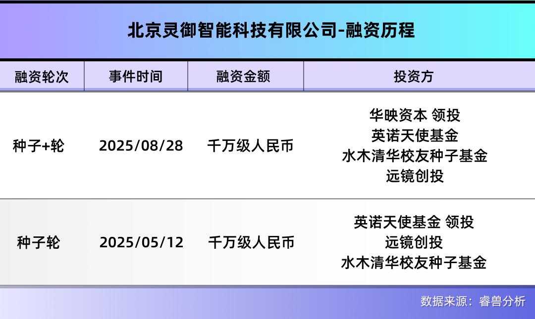 今年2月,灵御智能正式成立。5月,灵御智能宣布完成千万元级种子轮融资,英诺天使基金领投,水木校友种子基金、远镜创投跟投;三个月后再获千万元元级种子+轮融资,华映资本领投,老股东英诺天使基金、清华水木投资、远镜创投跟投。