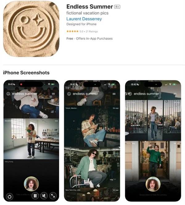 与苹果及谷歌应用商店那些滥竽充数App所不同的是,Endless Summer兑现了它的承诺:用户只需提交三张自拍,然后就能以指定地点为背景生成各种打卡照片,主打有钱有闲: