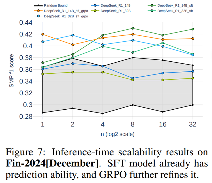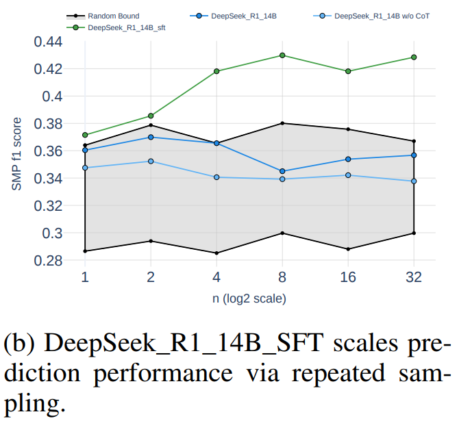 最后一步是推理时扩展(Inference-Time Scaling)。这就像是让模型在做决定前多思考几次。它会针对同一个问题生成多种不同的推理路径(比如 8 次、16 次),然后通过多数投票选出最终预测。实验发现,这种“多想几次再决定”的策略,确实能显著提高预测的稳定性和准确率。