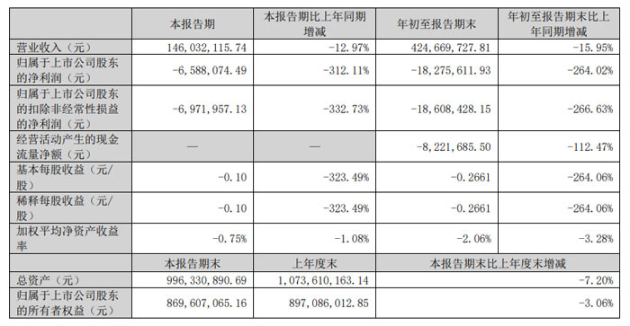 第三季度归属于上市公司股东的净利润为 - 658.81 万元,同比大幅下降 312.11%;扣除非经常性损益后净利润为 - 697.20 万元,同比降幅达 332.73%。1-9 月累计归母净利润为 - 1,827.56 万元,同比下降 264.02%,扣非后累计净利润 - 1,860.84 万元,同比下降 266.63%。