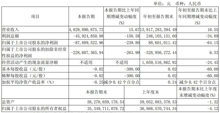 2025 年第三季度,利润端压力更为突出:本报告期内,公司营业收入为 48.30 亿元,同比增长 15.67%;但利润总额同比下滑 150.58% 至 - 4592.49 万元,归属于上市公司股东的净利润同比下滑 239.80% 至 - 8788.95 万元,扣除非经常性损益后的净利润同比下滑 263.99% 至 - 2.29 亿元。