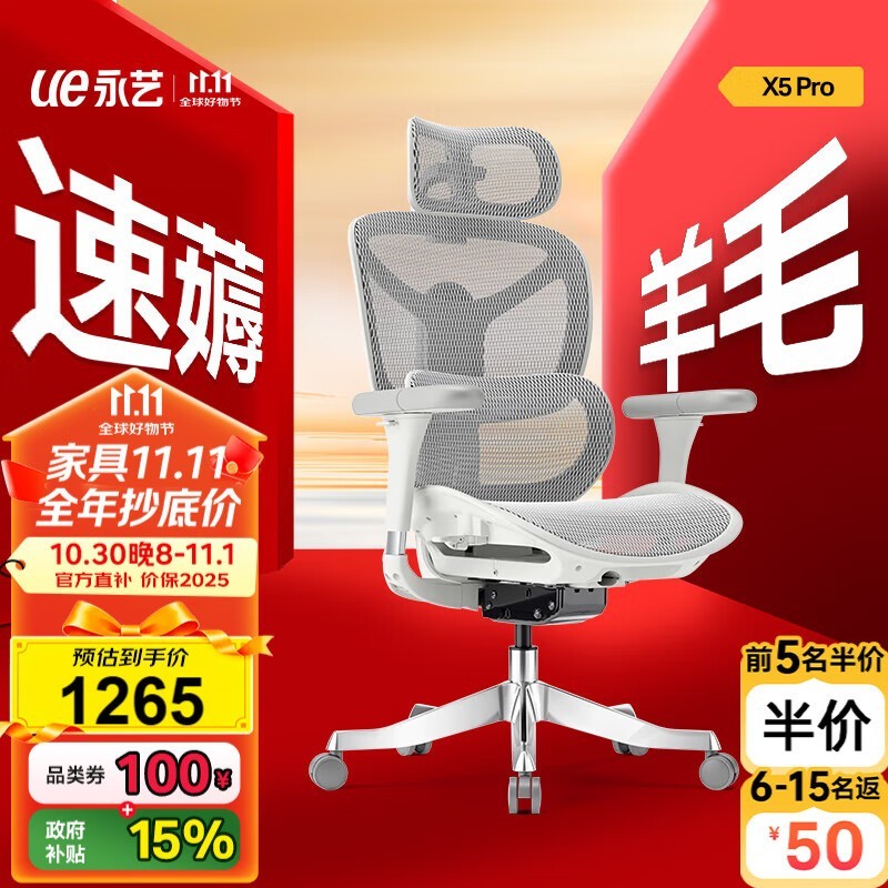 永艺人体工学椅X5Pro撑腰椅大促低至1235元