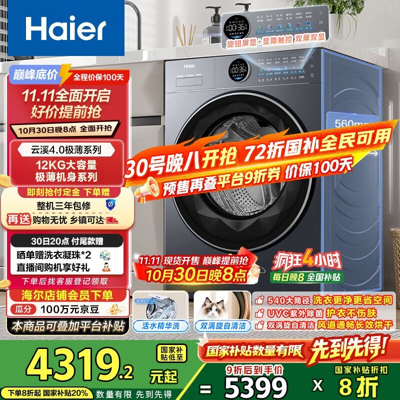海尔云溪4洗烘一体机预售低至4301元
