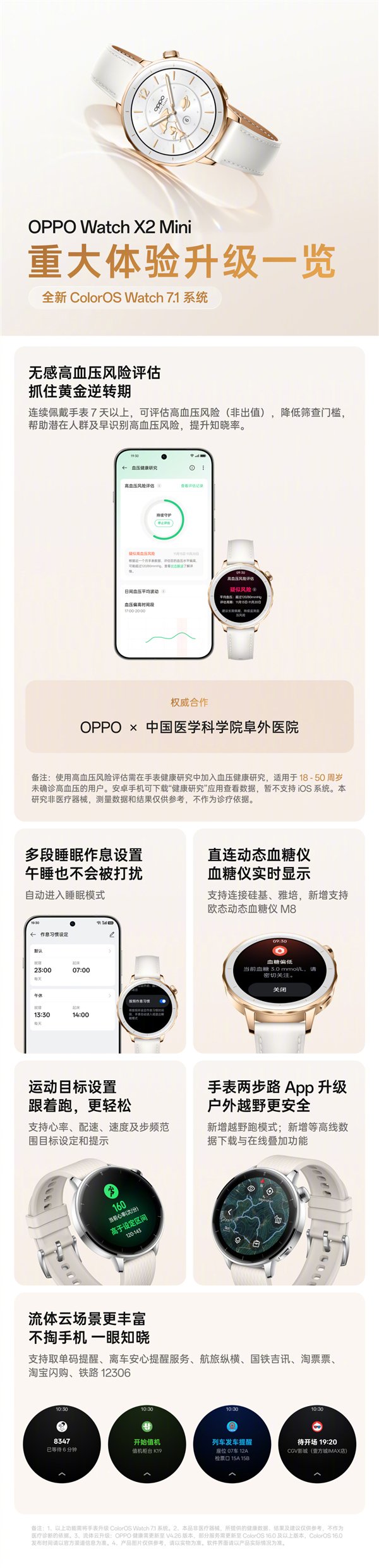 快科技10月29日消息,OPPO Watch X2 Mini今天官宣升级高血压风险评估研究功能,可以通过数据检测来评估高血压风险。