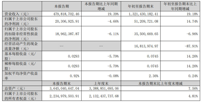 盈利水平同步提升:1-9月份,累计归母净利润达 5120.97 万元,同比增长 14.74%;扣除非经常性损益后,净利润为 1896.24 万元,盈利能力坚实。基本每股收益 0.0745 元,较上年同期的 0.0652 元增长 14.26%,股东回报能力进一步增强。第三季度,实现归母净利2030.69万元,同降4.66%。